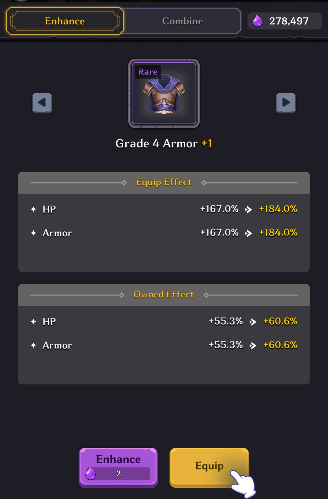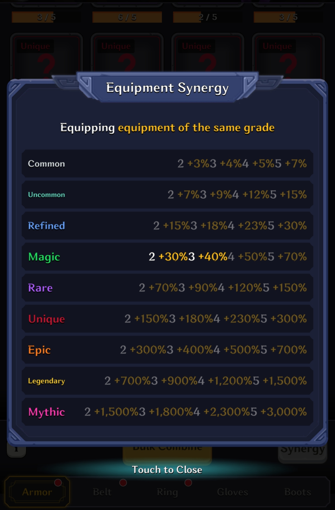 Equipping items of the same grade can increase Attack Power and Spell Power through equipment synergy.